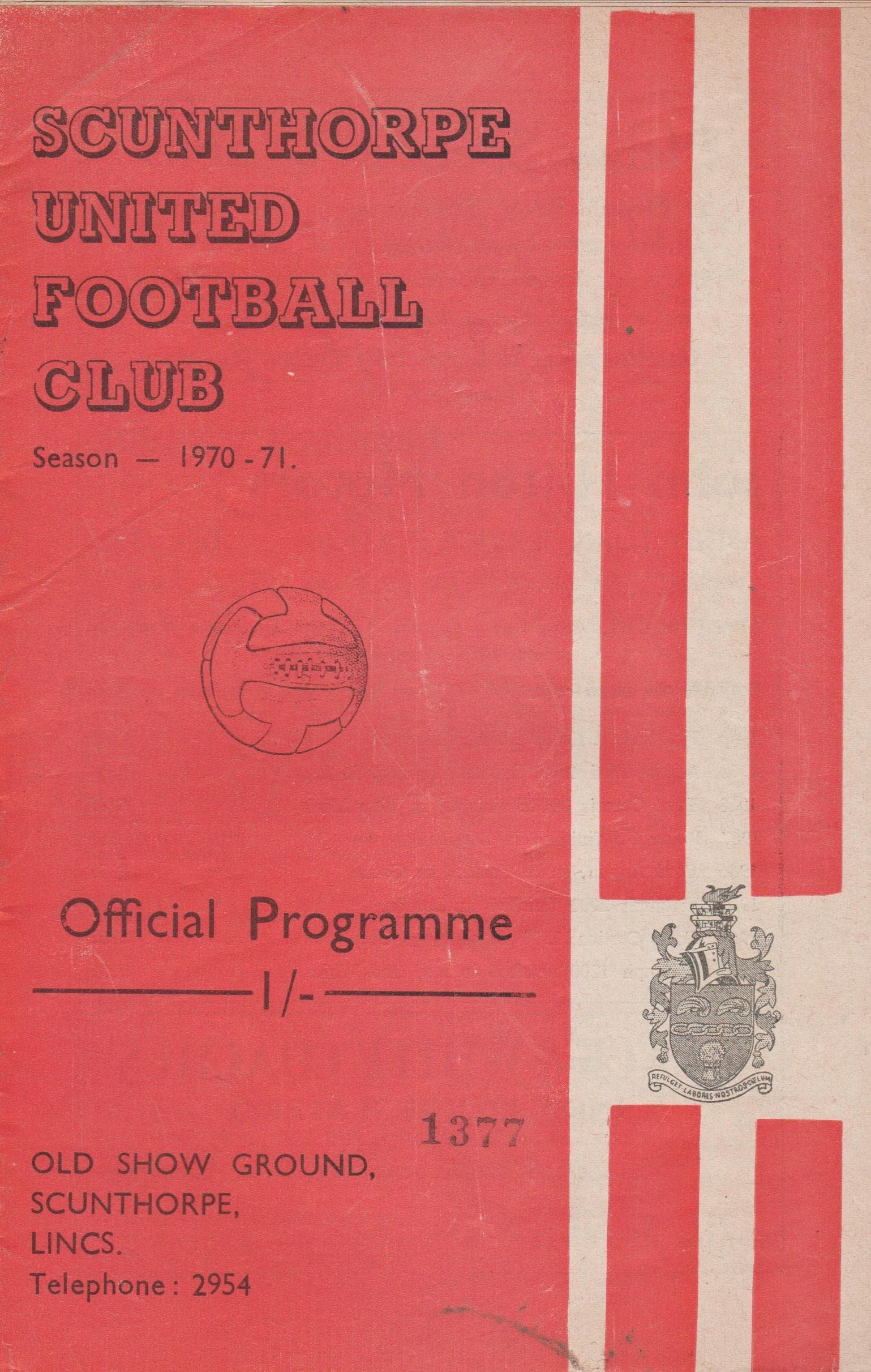 Match: Scunthorpe United v Southend United Competition: League Division 4 Date: 22-Aug-1970 Comments: Rating: 3 Condition: Fold Weight in grams: 60