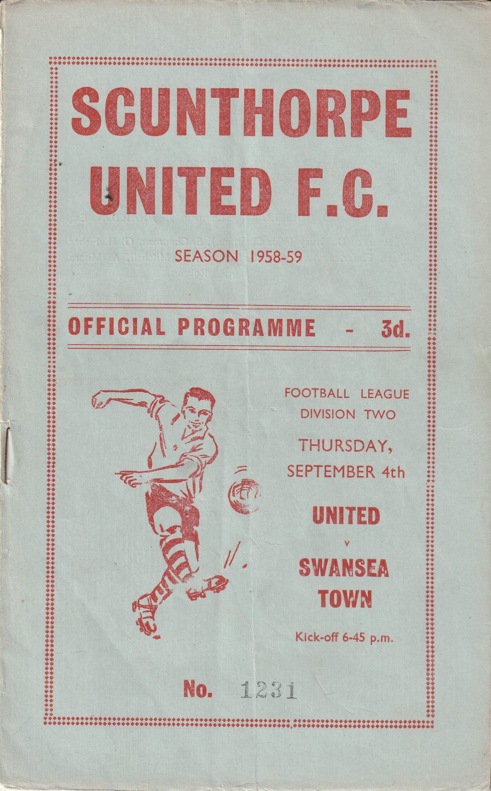 Scunthorpe United v Swansea Town 04-Sep-1958