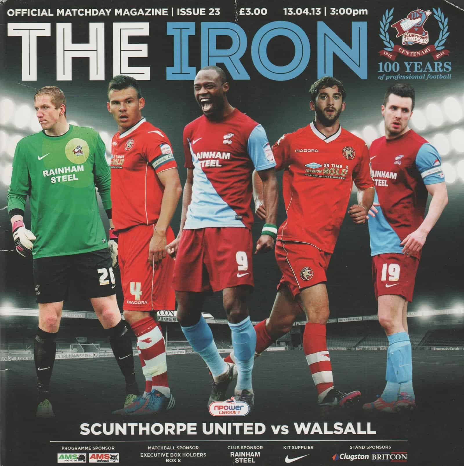 Match: Scunthorpe United v Walsall Competition: League 1 Date: 13-Apr-2013 Comments: Rating: 4 Condition: Slight corner turn Weight in grams: 300