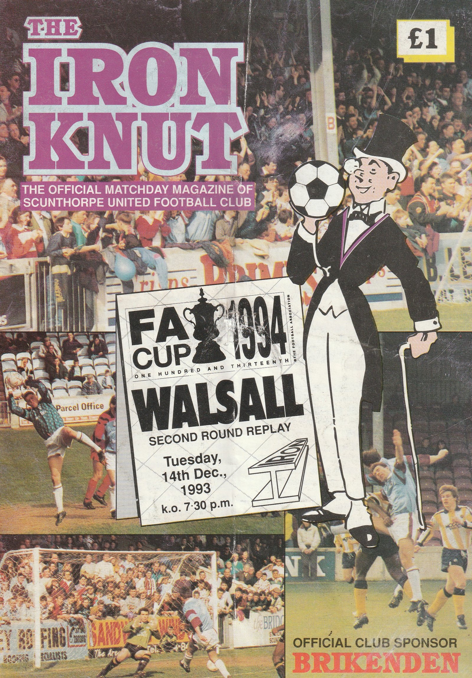 Match: Scunthorpe United v Walsall Competition: FA Cup 2nd Round Date: 14-Dec-1993 Comments: Rating: 3 Condition: Heavy fold and creasing Weight in grams: 100