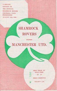 Match: Shamrock Rovers v Manchester United Competition: Friendly Date: 14-08-1964 Comments: Rating: 3 Condition: Fold Weight in grams: 60