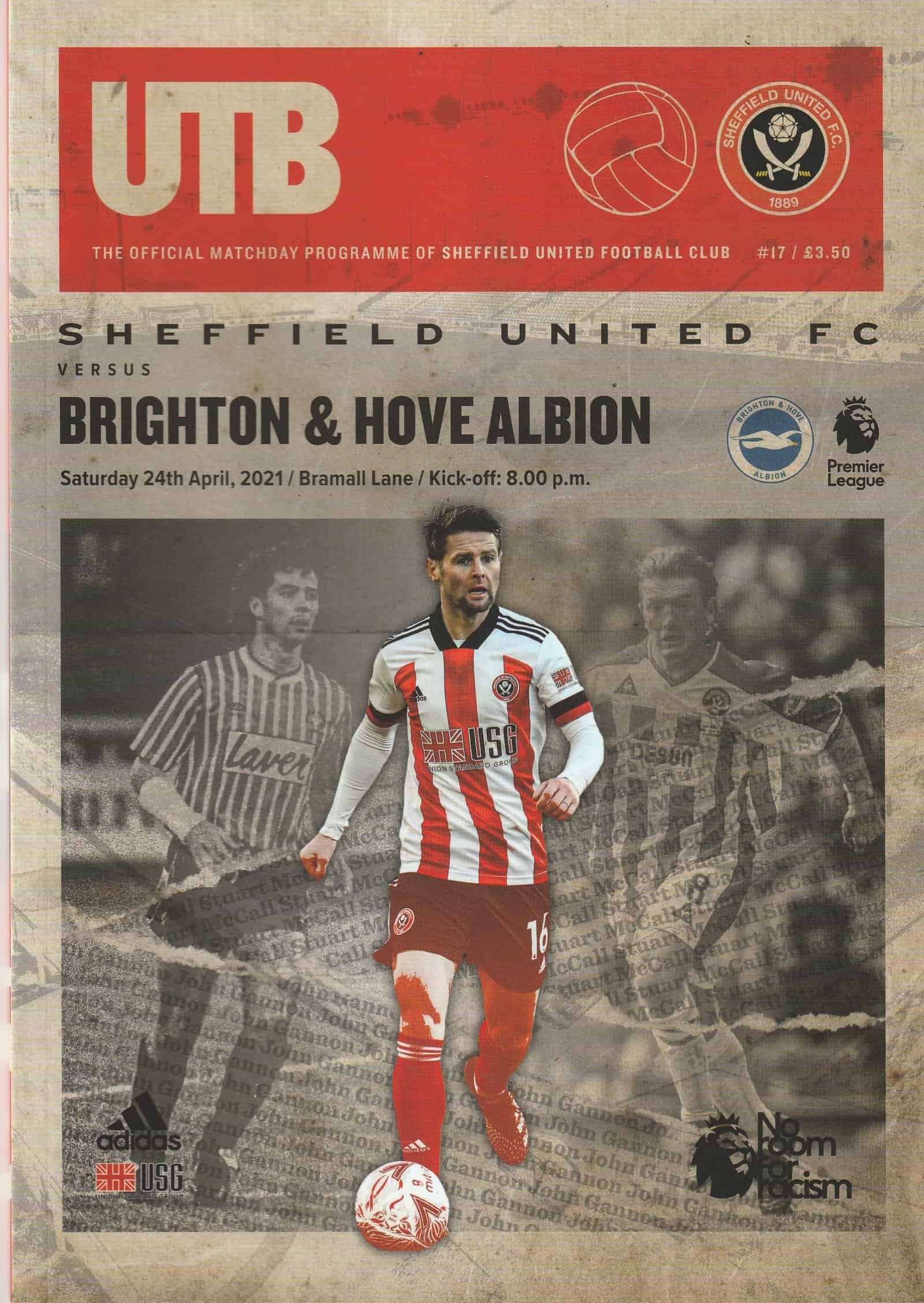 Match: Sheffield United v Brighton & Hove Albion Competition: Premier League Date: 24-Apr-2021 Comments: Rating: 4 Condition: Very good Weight in grams: 240