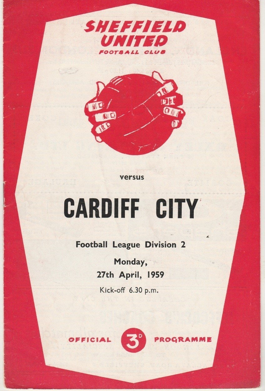 Match: Sheffield United v Cardiff City Competition: League Division 2 Date: 27-Apr-1959 Comments: Rating: 3 Condition: Slight mark on cover Weight in grams: 40