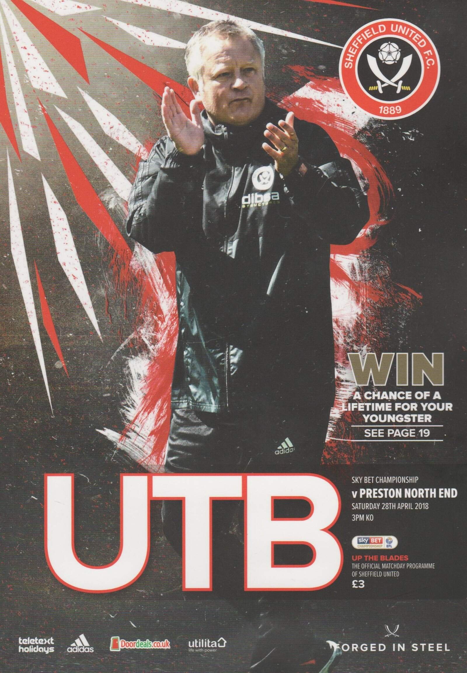 Match: Sheffield United v Preston North End Competition: SkyBet Championship Date: 28-Apr-2018 Comments: Rating: 4 Condition: Very good Weight in grams: 180