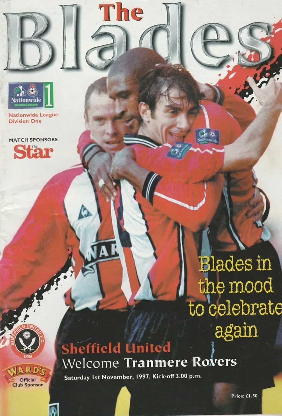Match: Sheffield United v Tranmere Rovers Competition: League Division 1 Date: 01-Nov-1997 Comments: Rating: 4 Condition: Very good Weight in grams: 200
