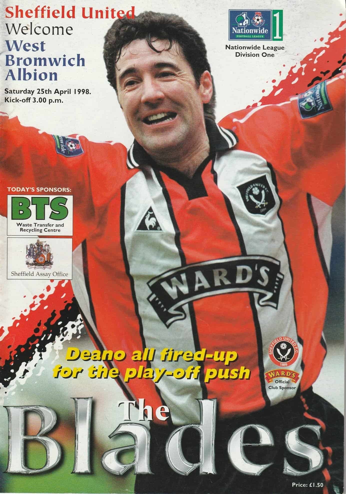 Match: Sheffield United v West Bromwich Albion Competition: League Division 1 Date: 25-Apr-1998 Comments: Rating: 4 Condition: Good Weight in grams: 200