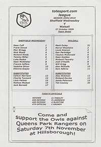 Match: Sheffield Wednesday Reserves v Walsall Reserves Competition: Totesport.com League Date: 27-10-2009 Comments: Black and White Single sheet Rating: 5 Condition: Excellent Weight in grams: 20