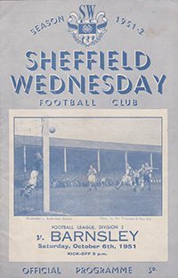 Match: Sheffield Wednesday v Barnsley Competition: League Division 2 Date: 06-10-1951 Comments: Rating: 3 Condition: Staples removed, slight fold, slight mark on face Weight in grams: 40