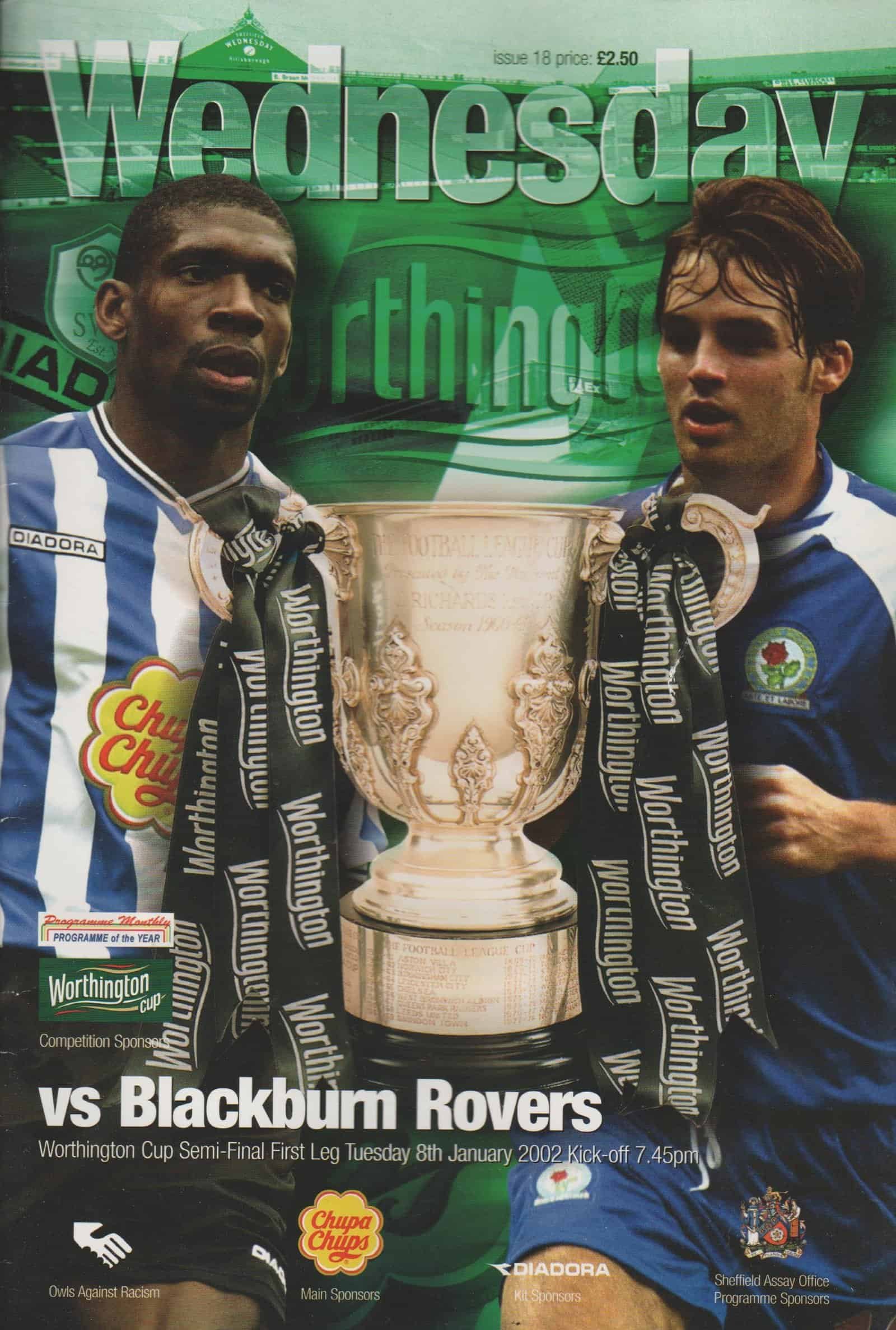 Match: Sheffield Wednesday v Blackburn Rovers Competition: Worthington Cup Semi Final 1st leg Date: 08-01-2002 Comments: Rating: 3 Condition: Folds Weight in grams: 200