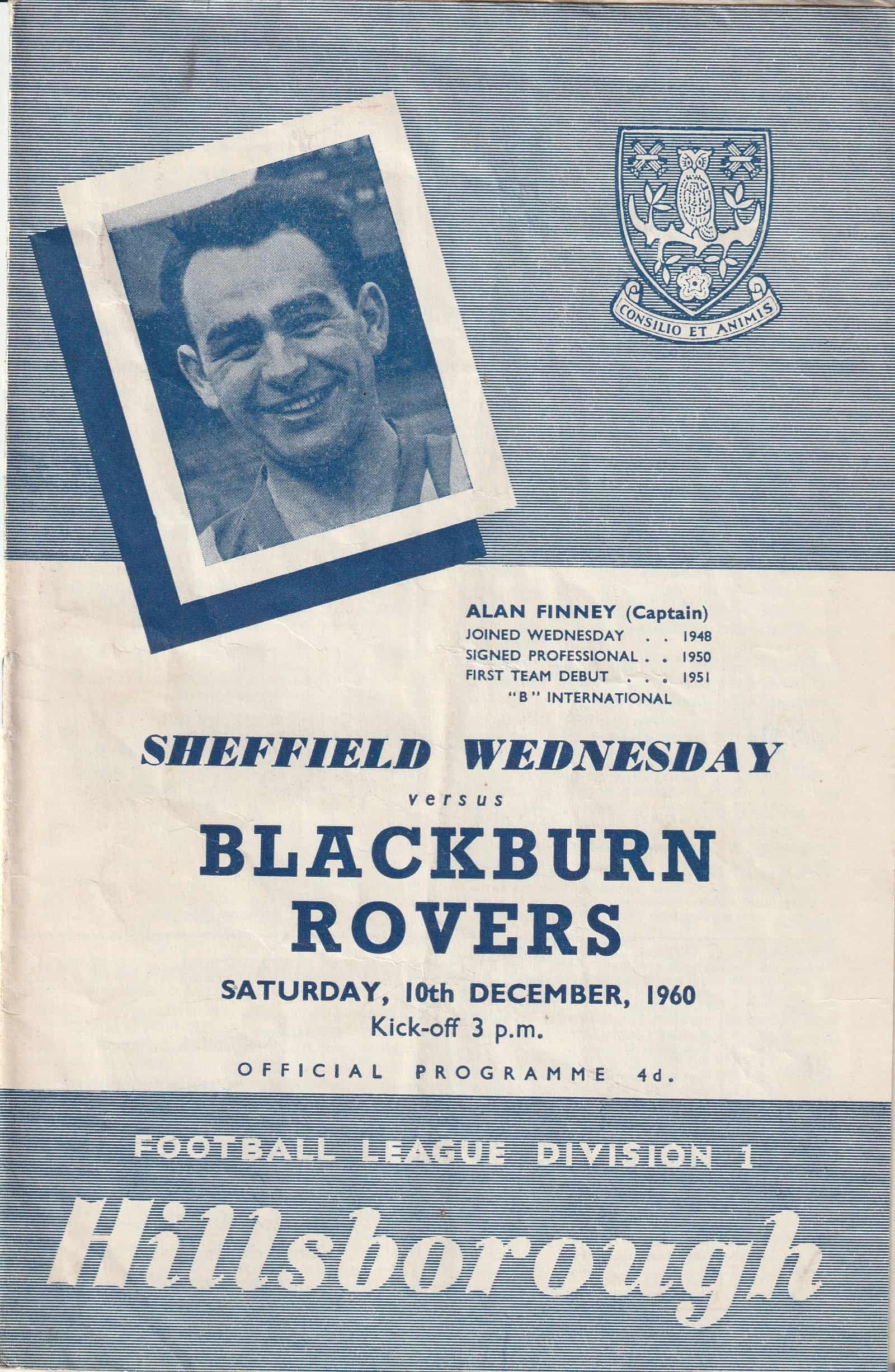 Match: Sheffield Wednesday v Blackburn Rovers Competition: League Division 1 Date: 10-Dec-1960 Comments: Rating: 3 Condition: Fold, handling wear around edges of programme Weight in grams: 40