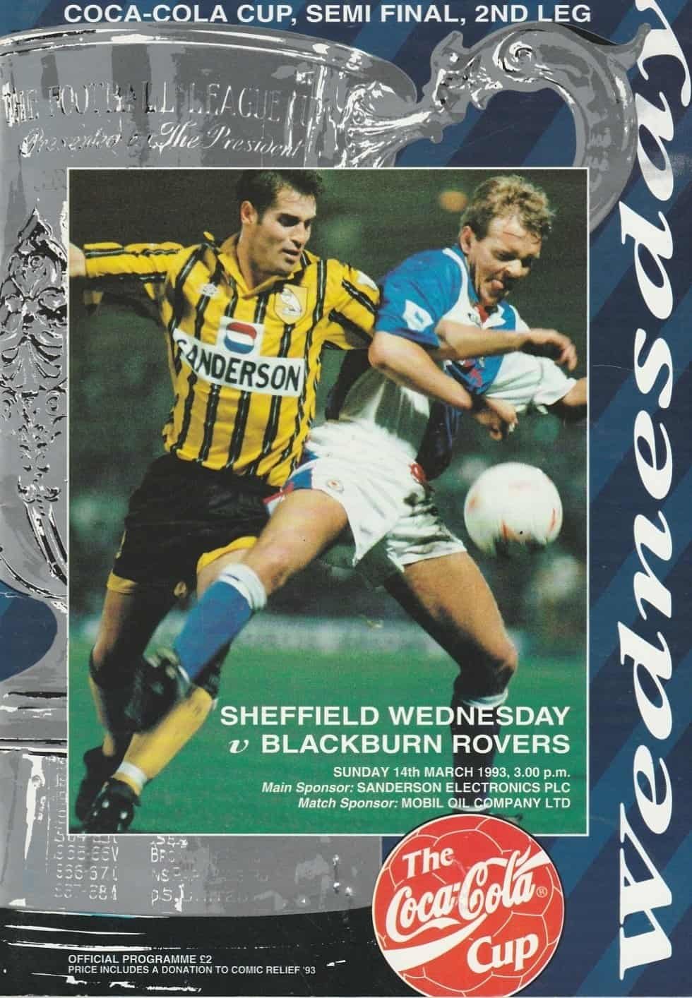 Match: Sheffield Wednesday v Blackburn Rovers Competition: League CupĀ Semi Final 2nd leg Date: 14-Mar-1993 Comments: Rating: 4 Condition: Very good Weight in grams: 160