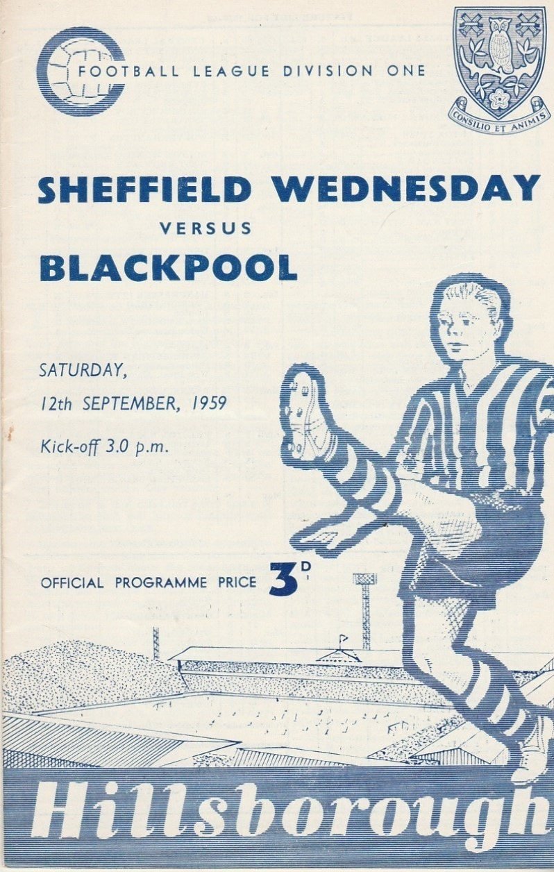 Match: Sheffield Wednesday v Blackpool Competition: League Division 1 Date: 12-Sep-1959 Comments: Rating: 3 Condition: Slight fold, team changes Weight in grams: 40