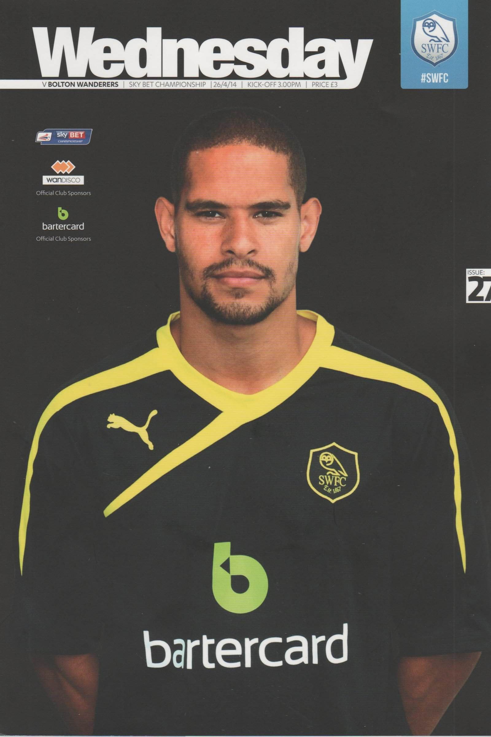 Match: Sheffield Wednesday v Bolton Wanderers Competition: Sky Bet Championship Date: 26-Apr-2014 Comments: Rating: 5 Condition: Excellent Weight in grams: 180
