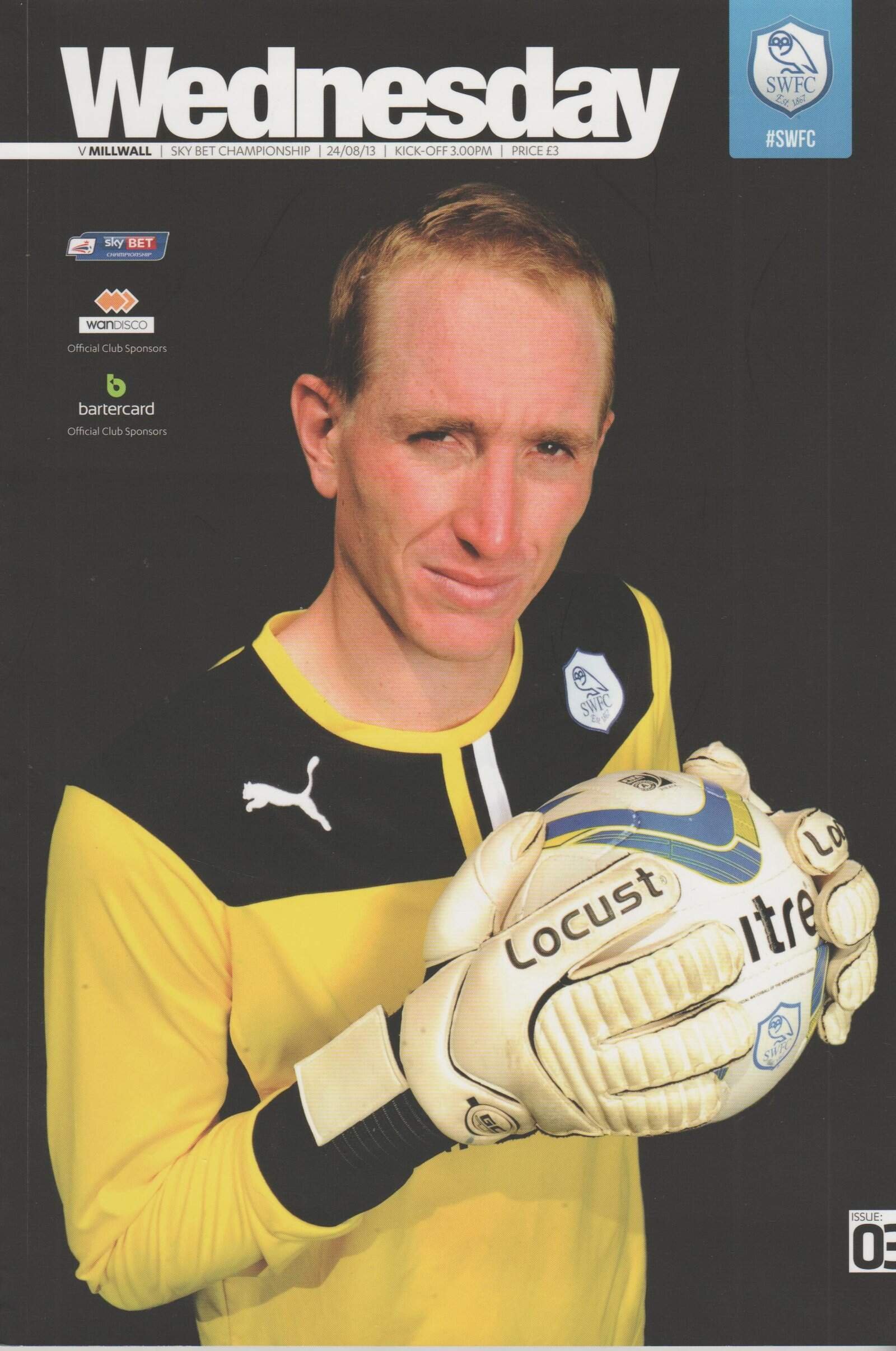 Match: Sheffield Wednesday v Millwall Competition: Sky Bet Championship Date: 24-Aug-2013 Comments: Rating: 5 Condition: Excellent Weight in grams: 180