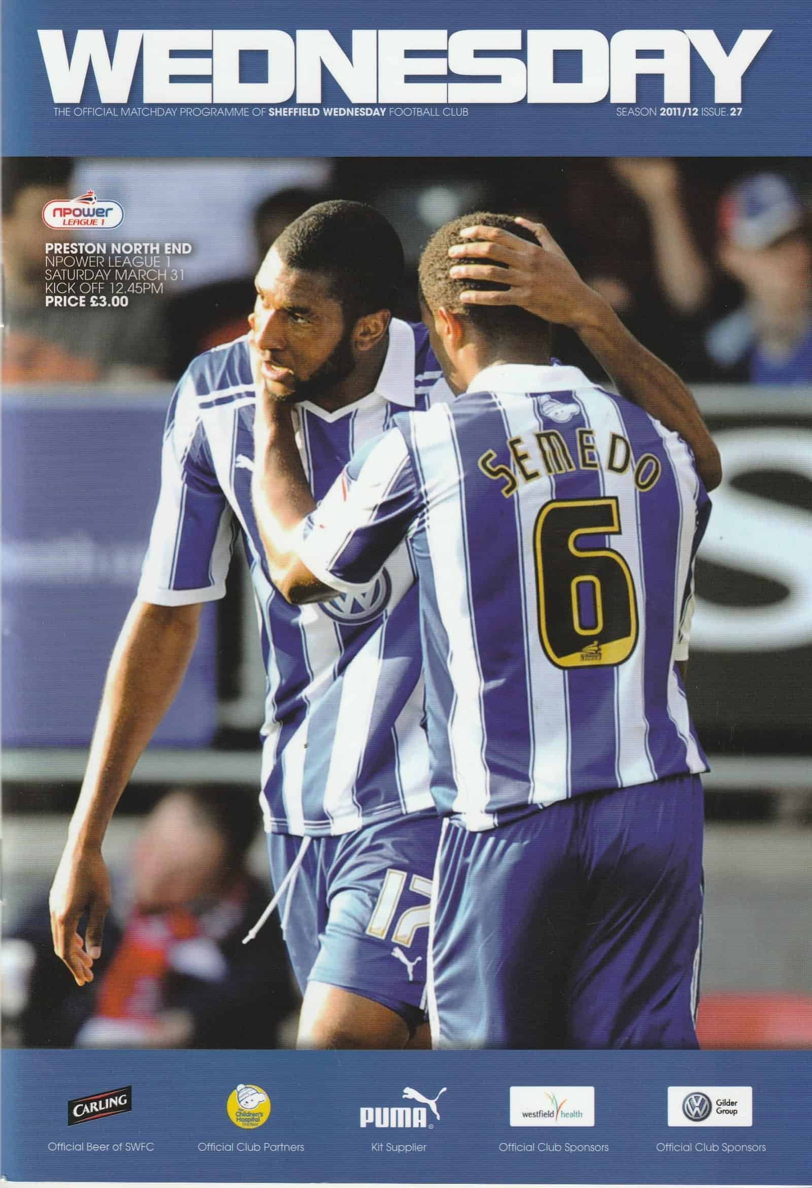Match: Sheffield Wednesday v Preston North End Competition: NPower League 1 Date: 31-Mar-2012 Comments: Rating: 4 Condition: Very good Weight in grams: 200