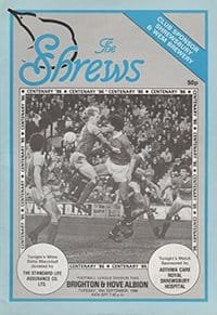 Match: Shrewsbury Town v Brighton and Hove Albion Competition: League Division 2 Date: 16-09-1986 Comments: Rating: 4 Condition: Very good Weight in grams: 60