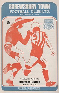 Match: Shrewsbury Town v Hereford United Competition: League Division 3 Date: 16-04-1974 Comments: Rating: 4 Condition: Very good Weight in grams: 40