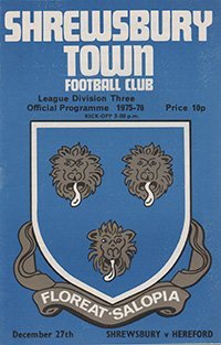 Match: Shrewsbury Town v Hereford United Competition: League Division 3 Date: 27-12-1975 Comments: Rating: 4 Condition: Score on line ups page Weight in grams: 40
