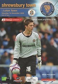 Match: Shrewsbury Town v Luton Town Competition: League 2 Date: 01-11-2008 Comments: Rating: 4 Condition: Very good Weight in grams: 180