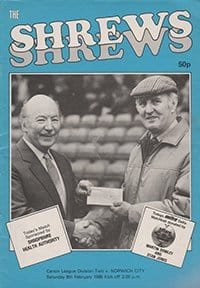 Match: Shrewsbury Town v Norwich City Competition: League Division 2 Date: 08-02-1986 Comments: Ken Brown autogragph on back Rating: 4 Condition: Very good Weight in grams: 60