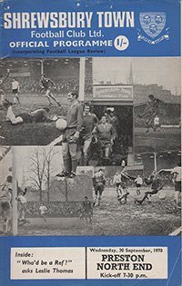 Match: Shrewsbury Town v Preston North End Competition: League Division 3 Date: 30-09-1970 Comments: Rating: 3 Condition: Pin holes Weight in grams: 60