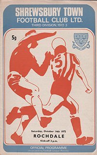 Match: Shrewsbury Town v Rochdale Competition: League Division 3 Date: 14-10-1972 Comments: Rating: 4 Condition: Very good Weight in grams: 60