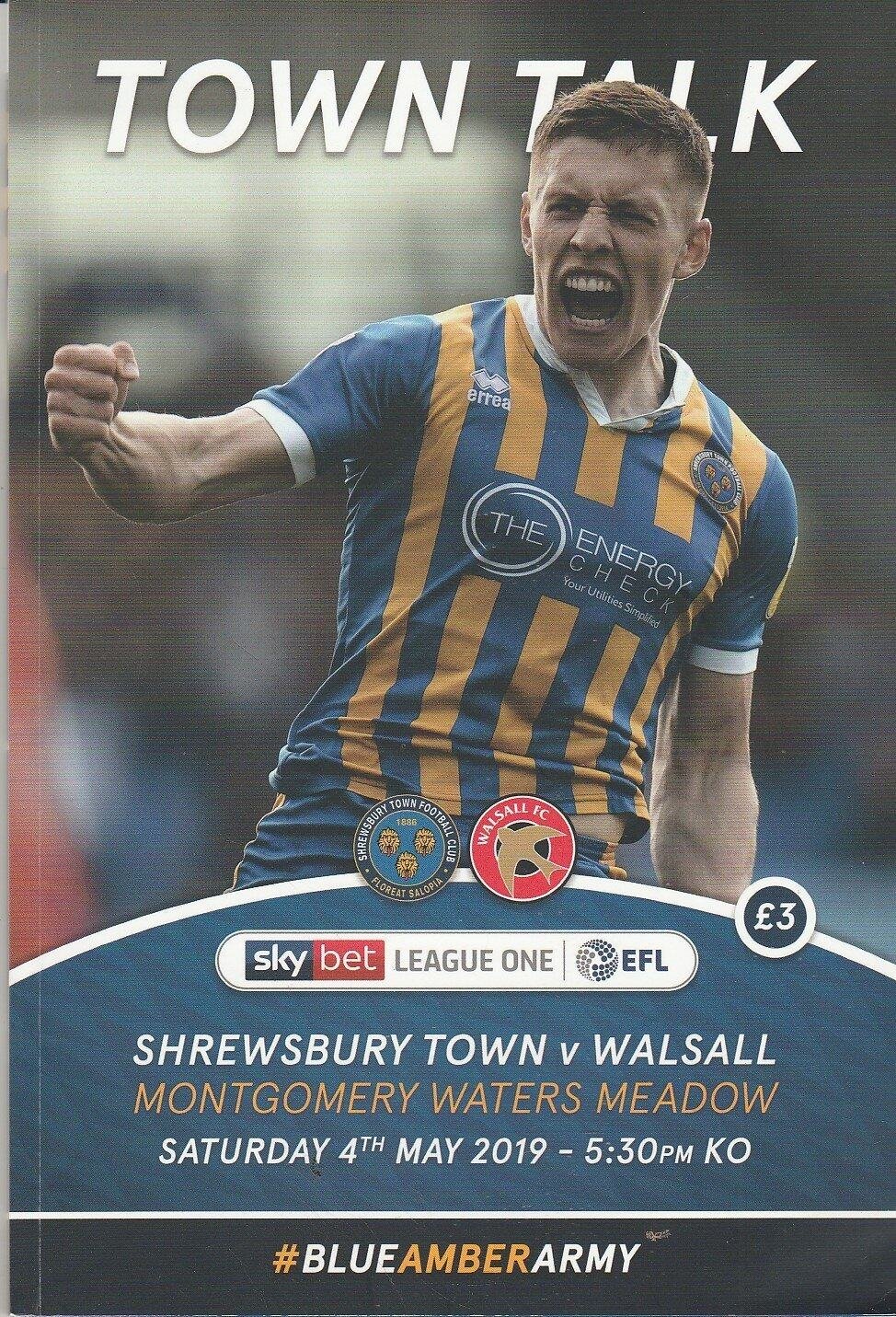 Match: Shrewsbury Town v Walsall Competition: League 1 Date: 04-May-2019 Comments: Rating: 4 Condition: Very good Weight in grams: 240