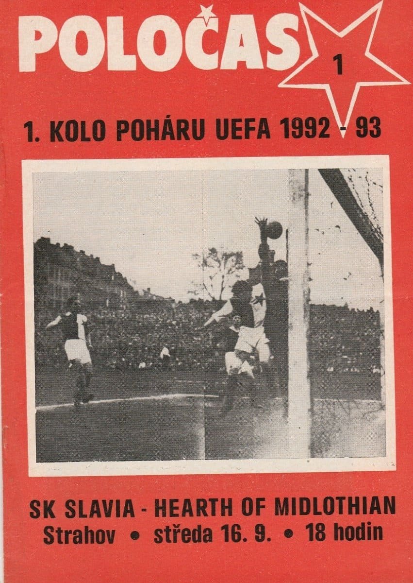 Match: Slavia Prague v Heart of Midlothian Competition: UEFA Cup 1st Round 1st leg Date: 16-Sep-1992 Comments: Rating: 4 Condition: Very good Weight in grams: 60