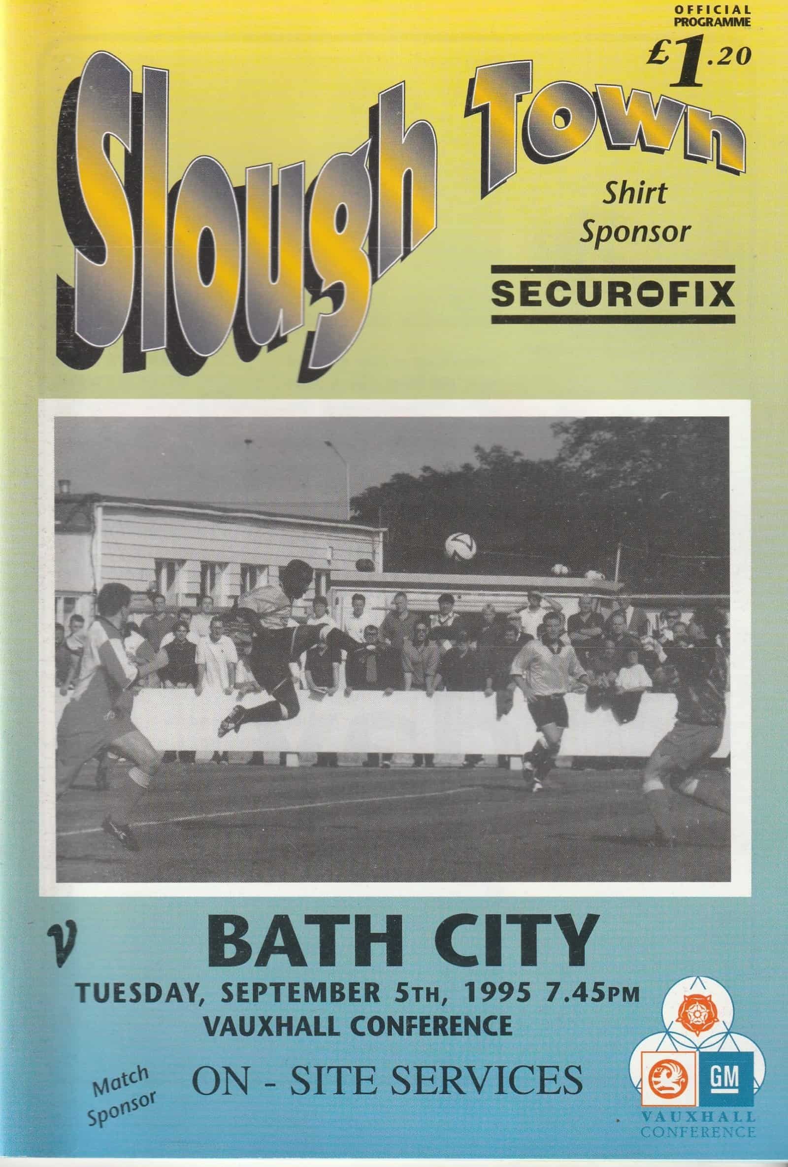 Match: Slough Town v Bath City Competition: GM Vauxhall Conference Date: 05-Sep-1995 Comments: Rating: 4 Condition: Very good Weight in grams: 140