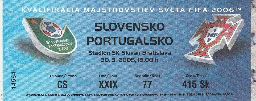 Match: Slovenia v Portugal Competition: World Cup Qualifier Group 3 Date: 30-Mar-2005 Comments: Rating: 4 Condition: Very good Weight in grams: 20