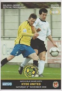 Match: Sollihull Moors v Hyde United Competition: Blue Square Bet North Date: 08-11-2008 Comments: Rating: 4 Condition: Team changes Weight in grams: 60