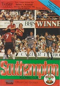 Match: Southampton v Arsenal Competition: League Division 1 Date: 15-11-1986 Comments: Rating: 5 Condition: Excellent Weight in grams: 60