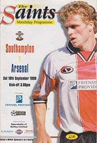 Match: Southampton v Arsenal Competition: Premier League Date: 18-09-1999 Comments: Rating: 5 Condition: Excellent Weight in grams: 140