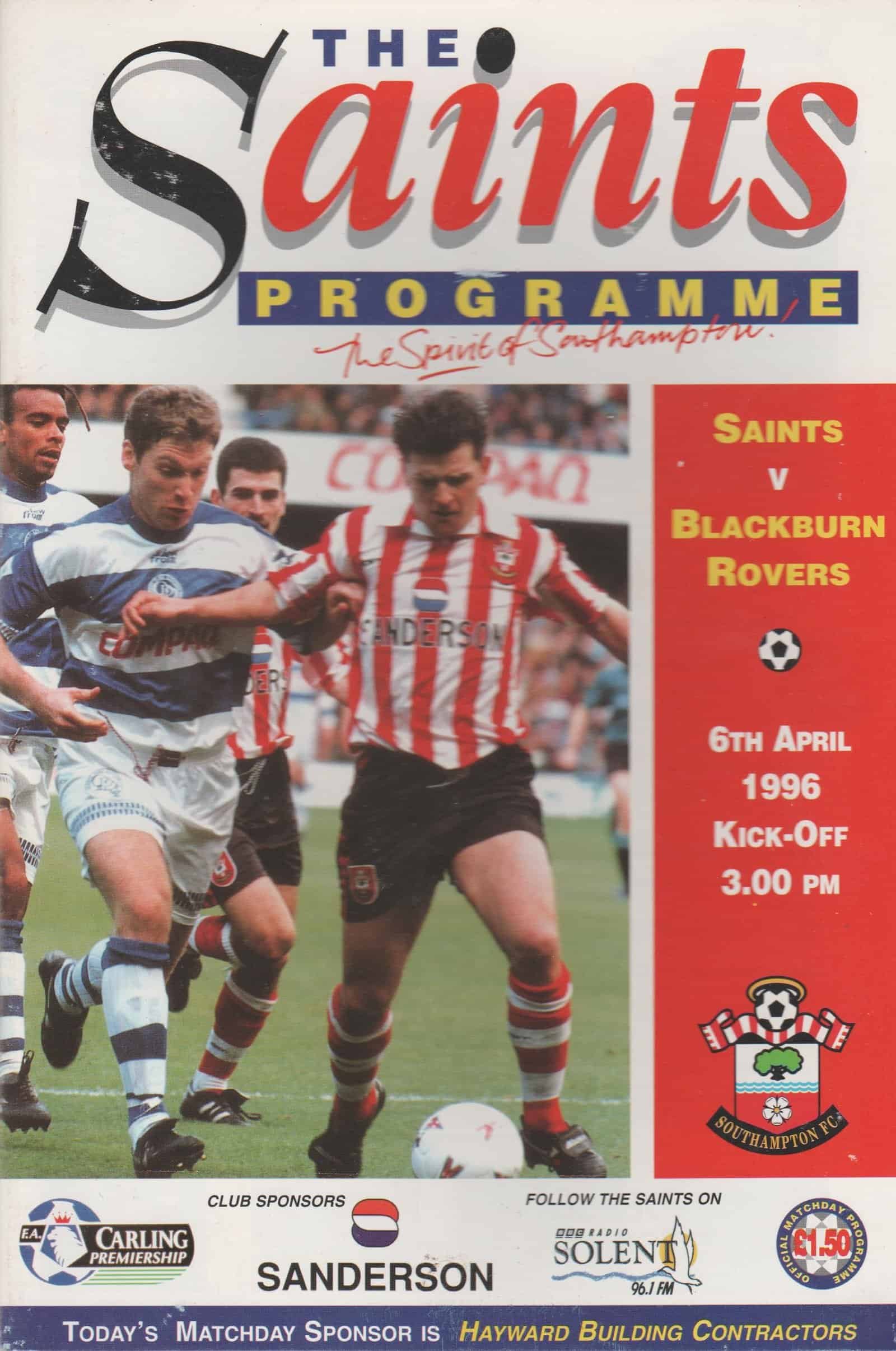 Match: Southampton v Blackburn Rovers Competition: Premier League Date: 06-Apr-1996 Comments: Rating: 4 Condition: Very good Weight in grams: 140