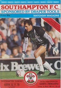 Match: Southampton v Newcastle United Competition: League Division 1 Date: 01-03-1988 Comments: Rating: 5 Condition: Excellent Weight in grams: 80