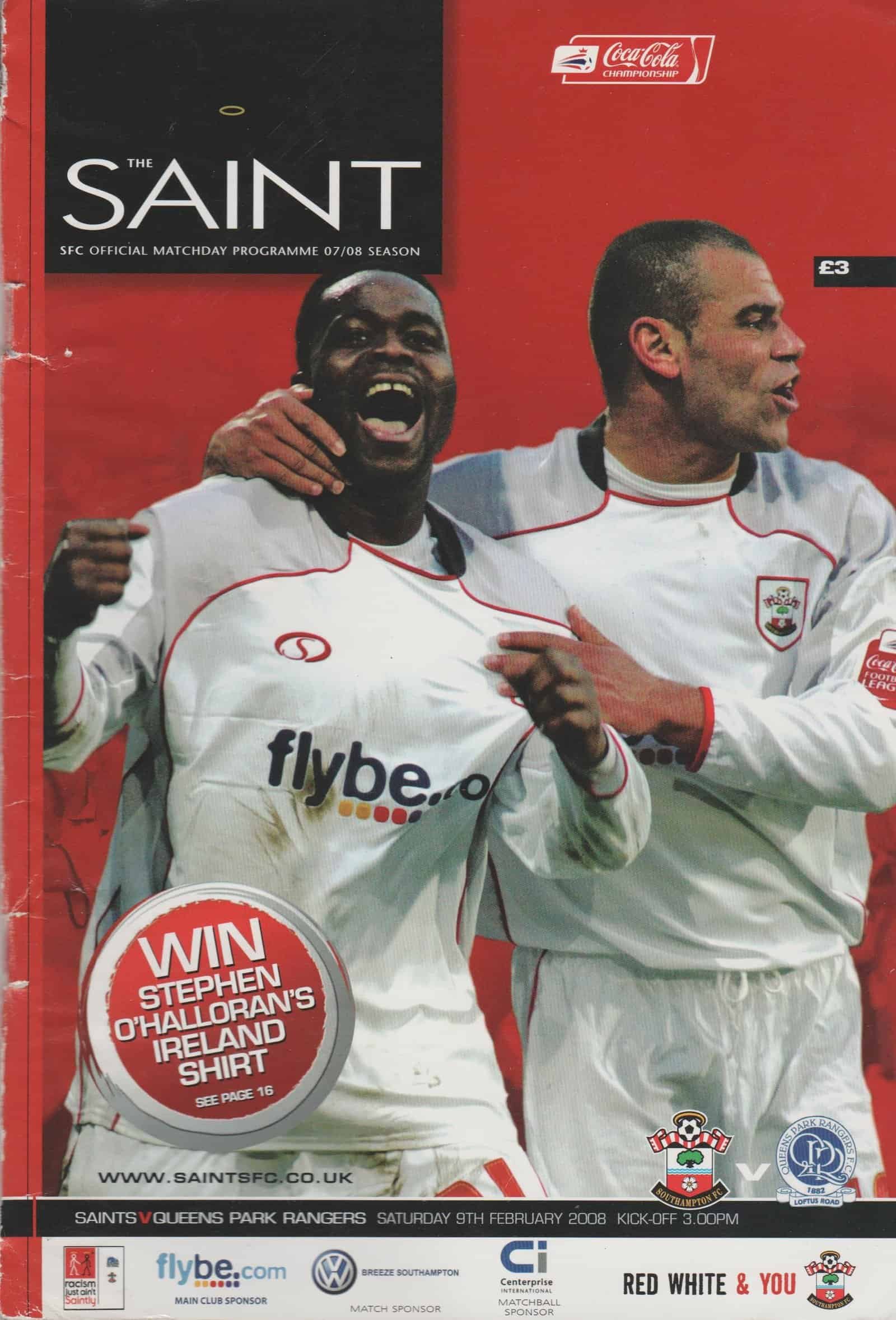 Match: Southampton v Queens Park Rangers Competition: League Championship Date: 09-Feb-2008 Comments: Rating: 3 Condition: Creases and splits to top and bottom of spine, rippling on back page Weight in grams: 160