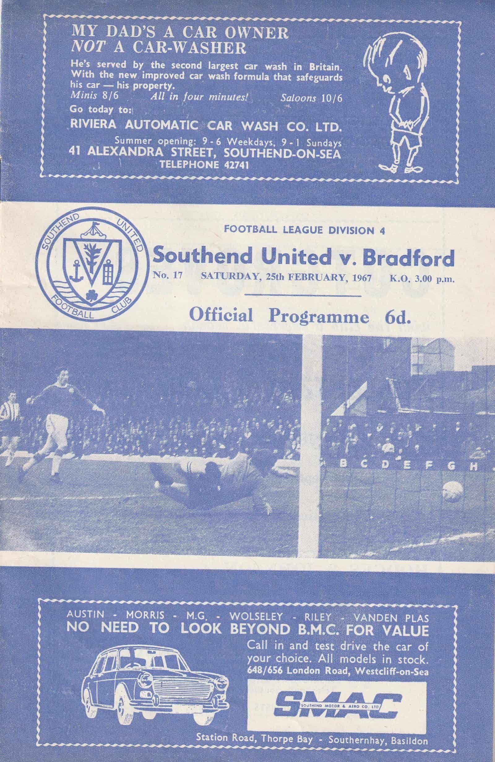 Match: Southend United v Bradford Park Avenue Competition: League Division 4 Date: 25-Feb-1967 Comments: Rating: 3 Condition: Team changes Weight in grams: 60