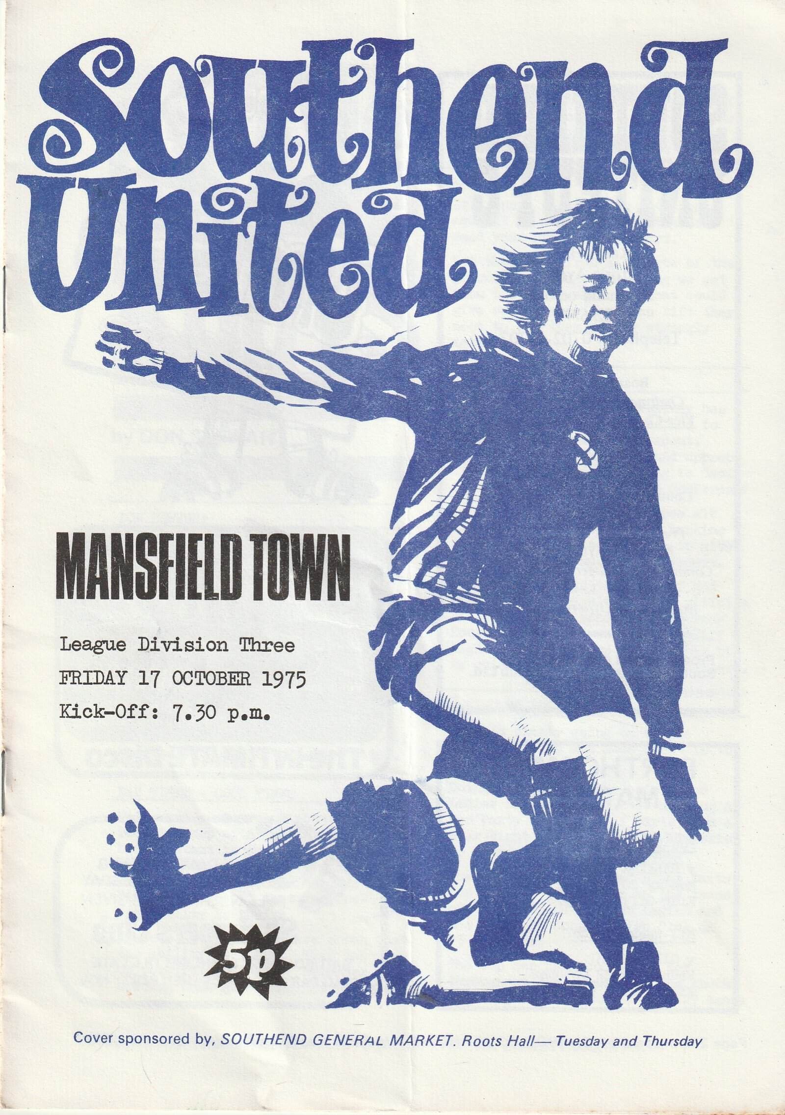 Match: Southend United v Mansfield Town Competition: League Division 3 Date: 17-Oct-1975 Comments: Rating: 3 Condition: Team changes, fold Weight in grams: 60