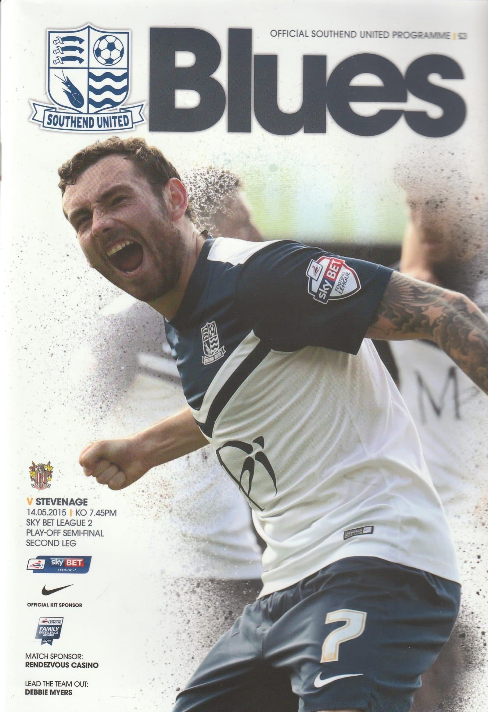 Match: Southend United v Stevenage Competition: Sky Bet League 2 Play off Semi Final 2nd leg Date: 14-May-2015 Comments: Rating: 4 Condition: Very good Weight in grams: 200