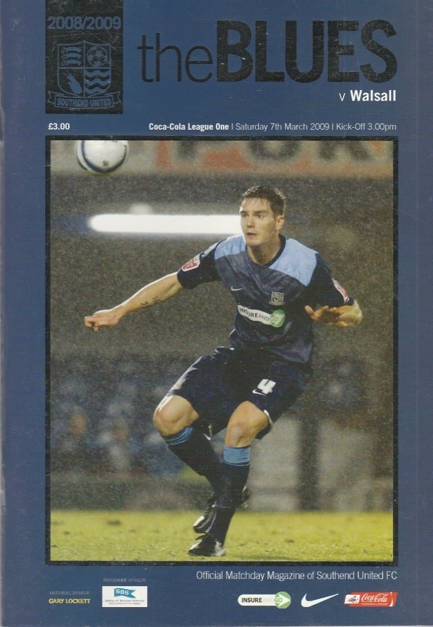 Match: Southend United v Walsall Competition: Coca Cola League 1 Date: 07-Mar-2009 Comments: Rating: 4 Condition: Very good Weight in grams: 200