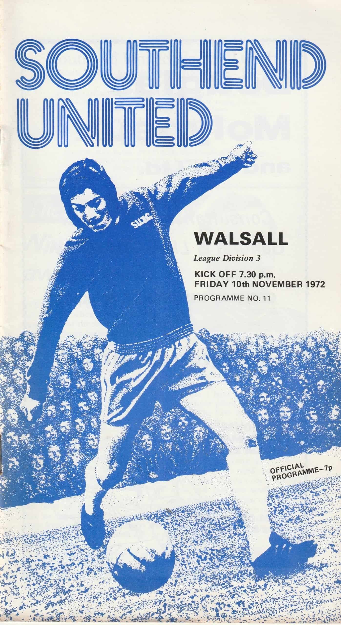 Match: Southend United v Walsall Competition: League Division 3 Date: 10-Nov-1972 Comments: Rating: 3 Condition: Team changes Weight in grams: 40