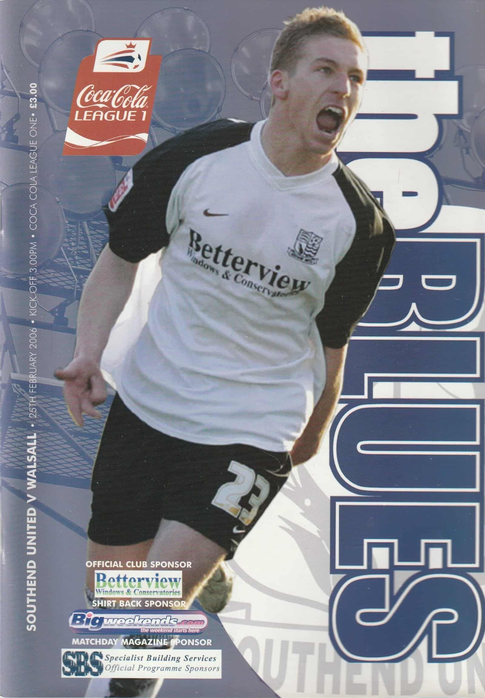 Match: Southend United v Walsall Competition: League 1 Date: 25-Feb-2006 Comments: Rating: 4 Condition: Very good Weight in grams: 200
