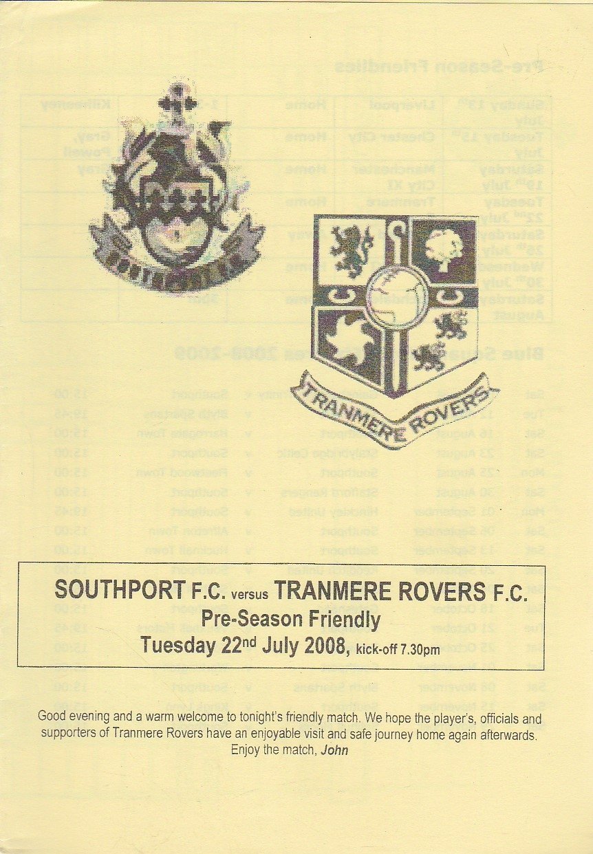 Match: Southport v Tranmere Rovers Competition: Friendly Date: 22-Jul-2008 Comments: Rating: 4 Condition: Very good Weight in grams: 60