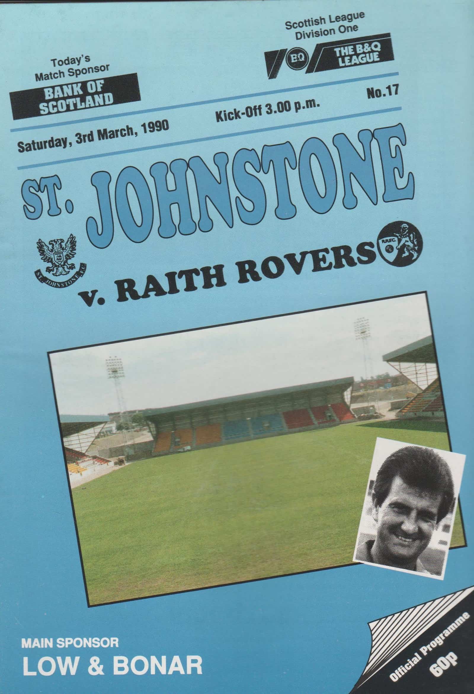 Match: St Johnstone v Raith Rovers Competition: Scottish League Division 1 Date: 03-Mar-1990 Comments: Rating: 4 Condition: Very good Weight in grams: 80