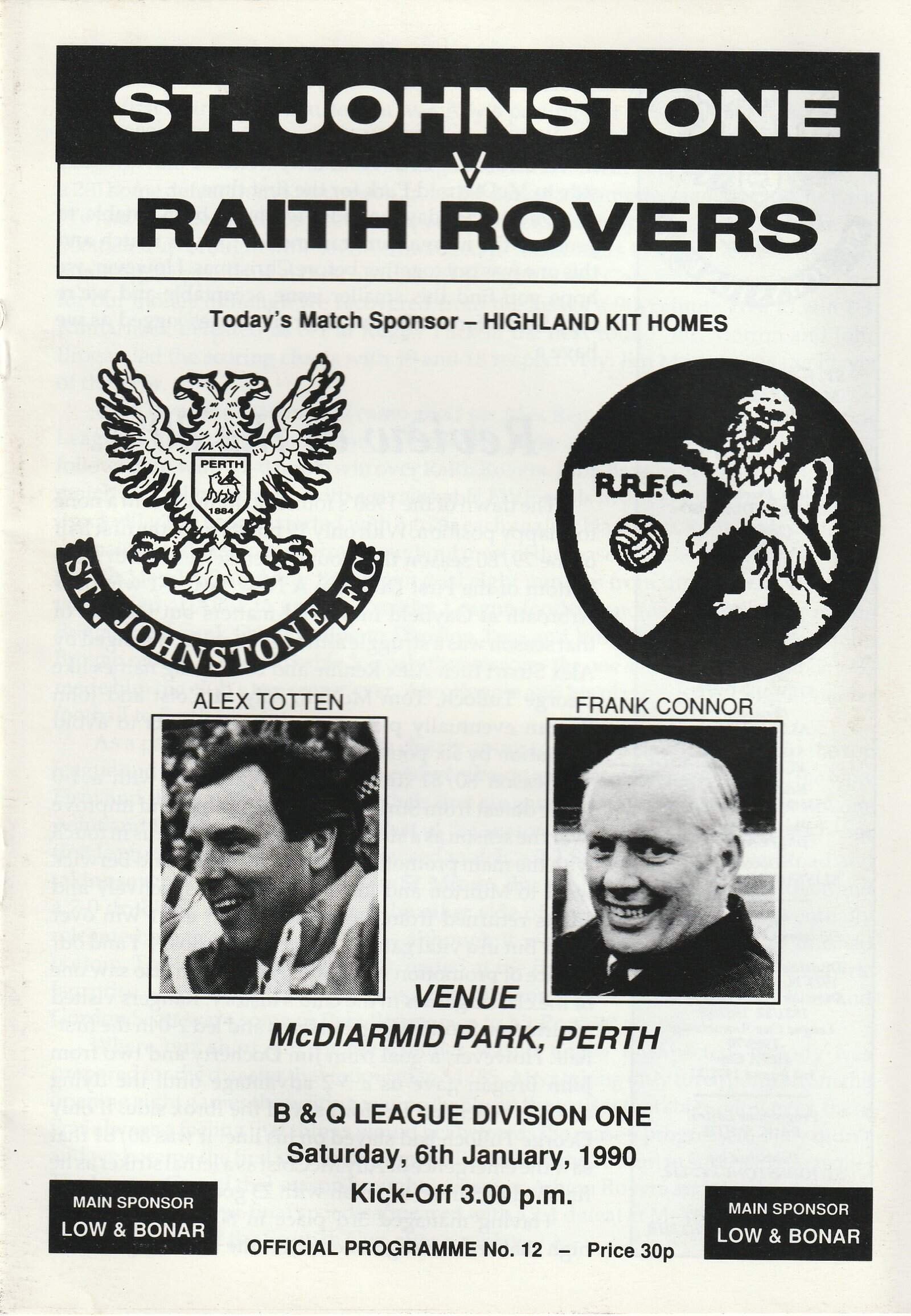 Match: St Johnstone v Raith Rovers Competition: Scottish League Division 1 Date: 06-Jan-1990 Comments: Rating: 4 Condition: Very good Weight in grams: 80