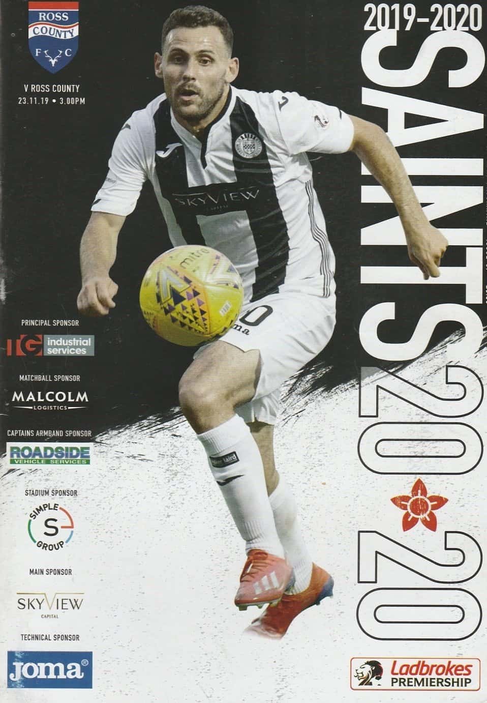 Match: St Mirren v Ross County Competition: Ladbroke Premiership Date: 23-Nov-2019 Comments: Rating: 3 Condition: Slight corner turn on cover, print smudge mark on back page Weight in grams: 160