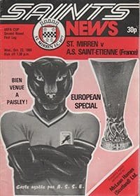 Match: St Mirren v St Etienne Competition: UEFA Cup 2nd Round 1st leg Date: 22-10-1980 Comments: Rating: 4 Condition: Very good Weight in grams: 60