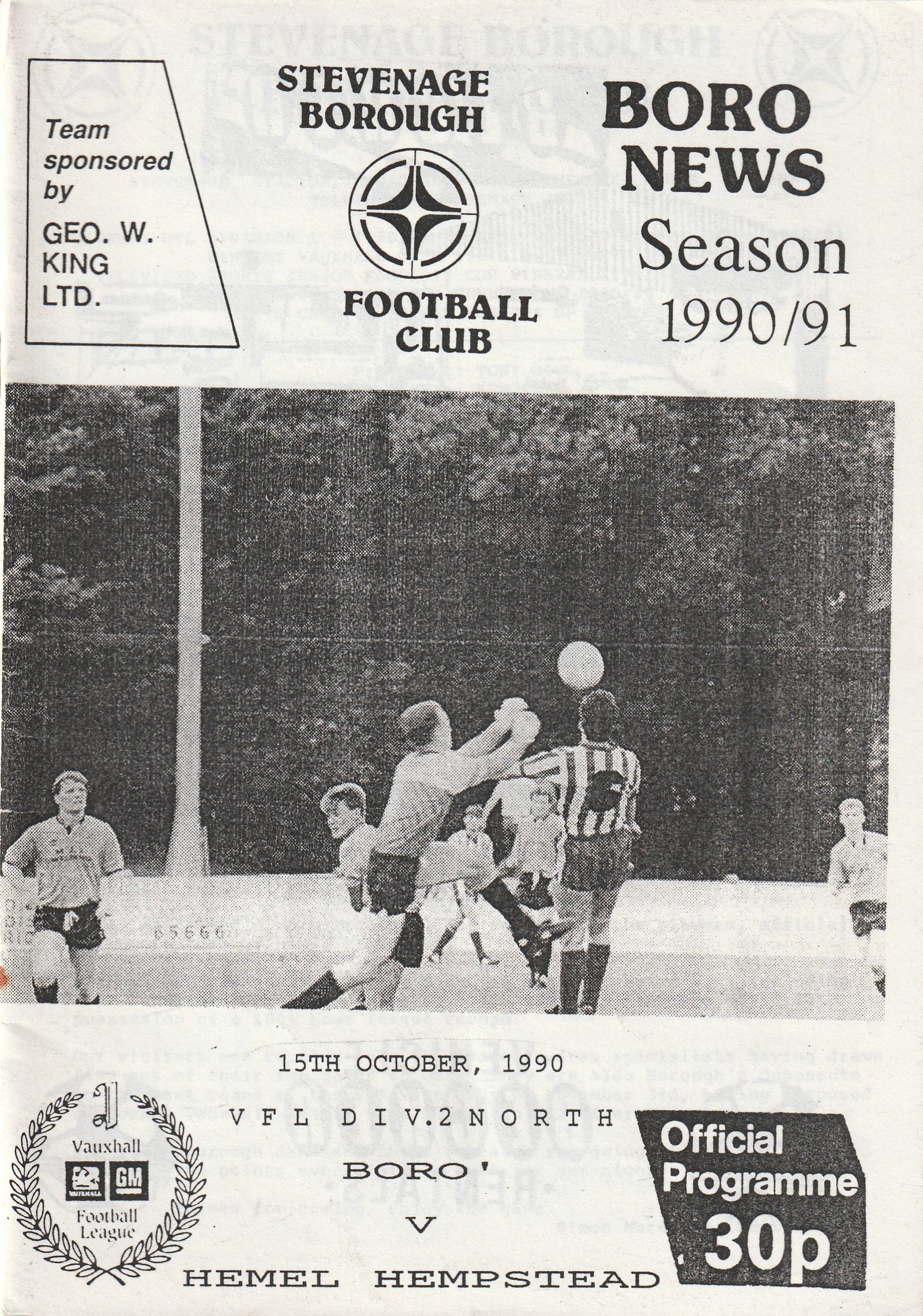 Match: Stevenage Borough v Hemel Hempstead Competition: Vauxhall League Division 2 North Date: 15-Oct-1990 Comments: Rating: 4 Condition: Very good Weight in grams: 100