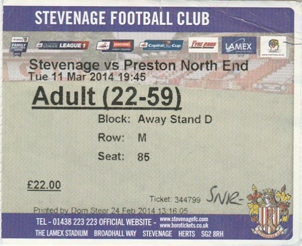 Match: Stevenage v Preston North End Competition: NPower League 1 Date: 11-03-2014 Comments: Rating: 4 Condition: Crease on corner Weight in grams: 10