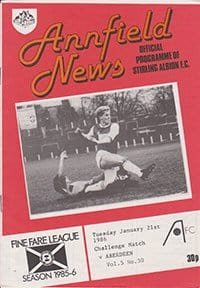 Match: Stirling Albion v Aberdeen Competition: Friendly Date: 21-01-1986 Comments: Rating: 4 Condition: Very good Weight in grams: 40